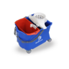 O Balde poder ser utilizado sem a divisória, sendo de fácil deslocamento pois conta com alças resistentes e rodízios de 50 mm, que permitem deslocamentos sem derrame dos líquidos internos.